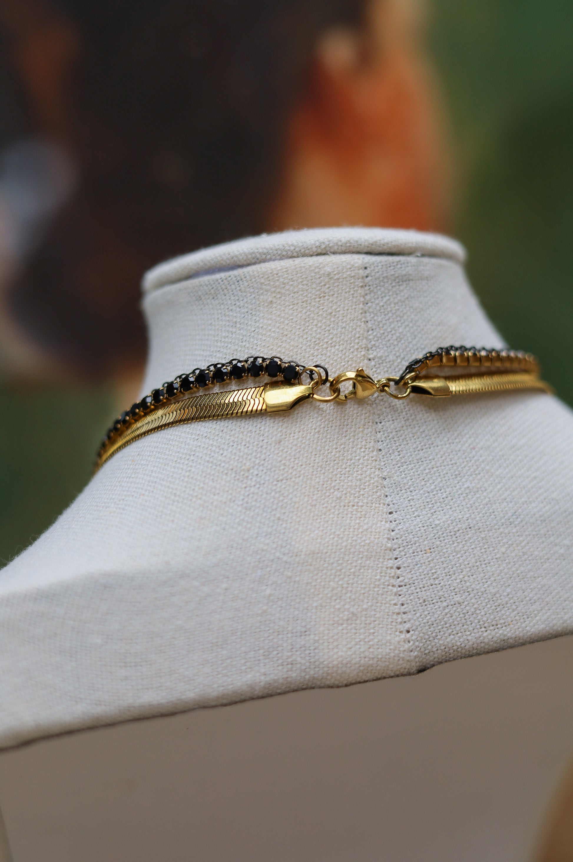 Bottom gold necklace only. Black tennis and chain sold separately.