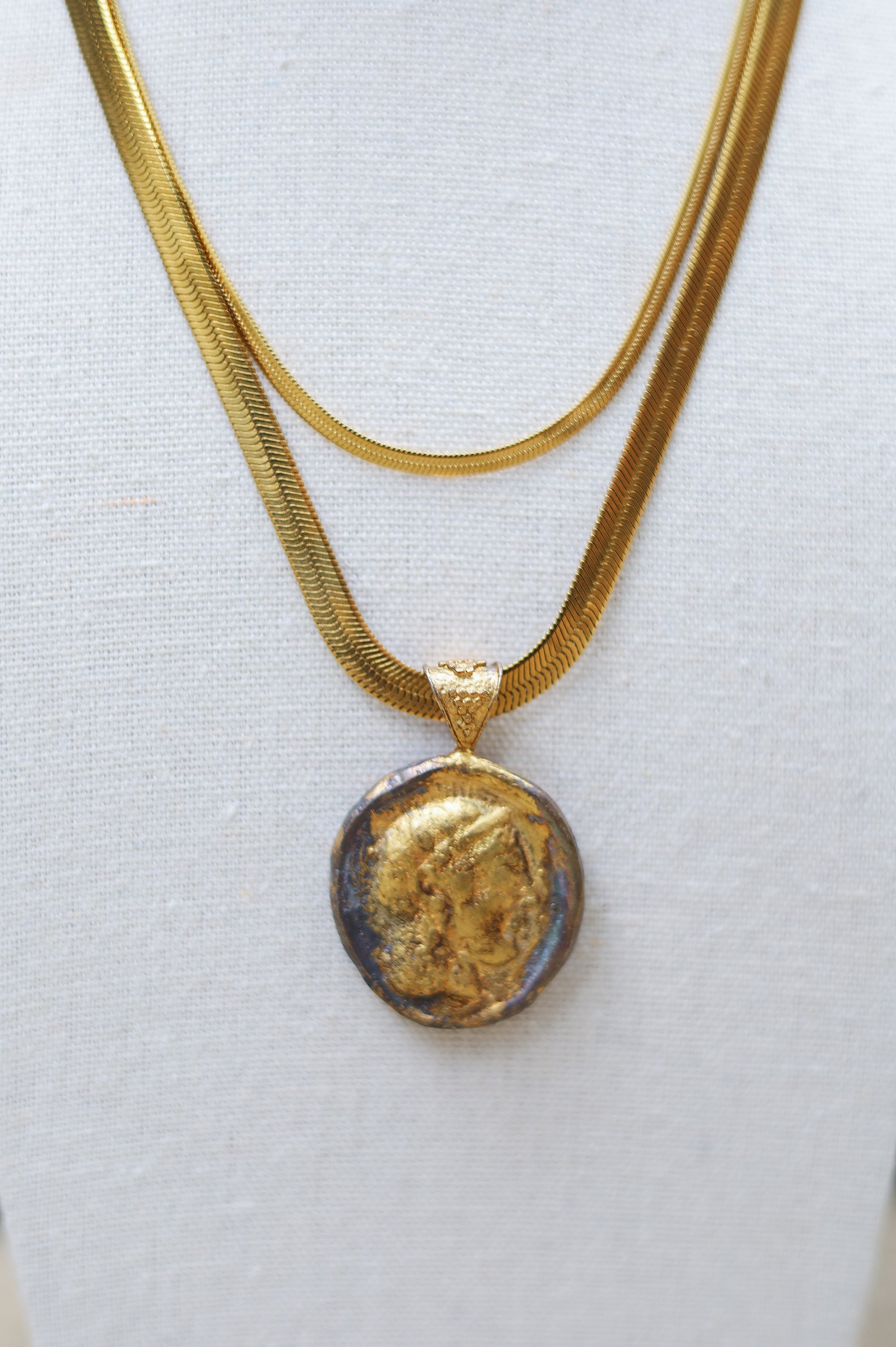 Layered with our best selling snake necklace.